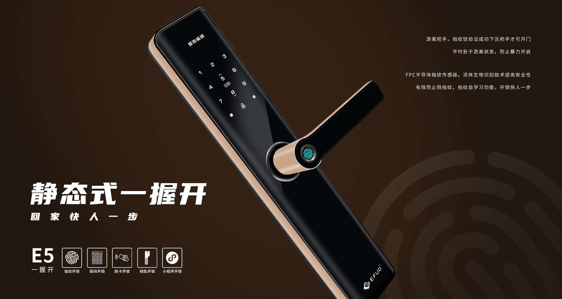 中山市愛而福德電子科技有限公司專注家用智能鎖25年,是一家集產品研發(fā)、制造、銷售、售后于一體全產業鏈的國家高新技術企業。公司擁有現代化生產基地8500平方米,具備35000把/月的生產規(guī)模及一支十多年專業的研發(fā)團隊,產品均擁有100%自主知識產權。公司一直秉承“創新智造,工匠精神”,為每一位用戶提供智能、便捷、安全的高品質生活!